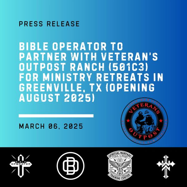 Rockwall, TX – Bible Operator is proud to announce a strategic partnership with Veteran’s Outpost Ranch (501c3) to establish a dedicated retreat space for Christian military and veteran men. Beginning August 2025, this collaboration will provide a powerful new location in Greenville, TX, for faith-based retreats designed to strengthen spiritual resilience, foster healing, and build unshakable brotherhood among those who have served.